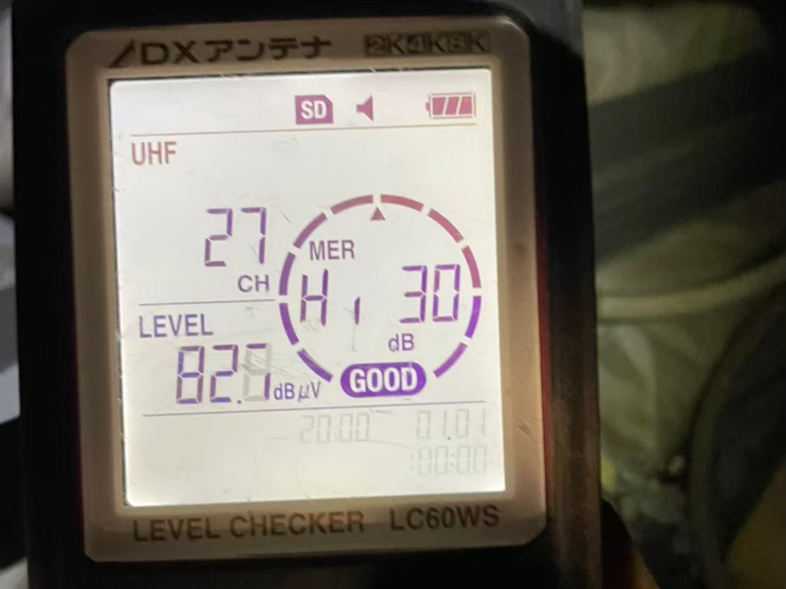アンテナとブースターを設置して、受信電波のレベルは十分です👍️