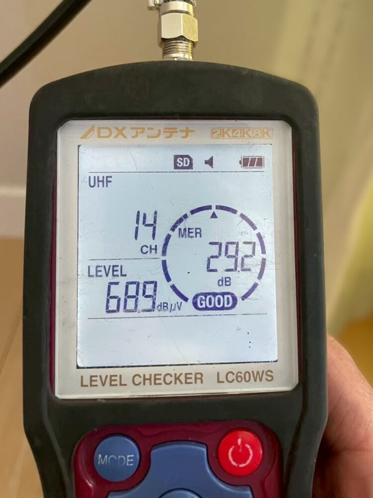 アンテナとブースターを設置して、受信電波のレベルはGOODです😊