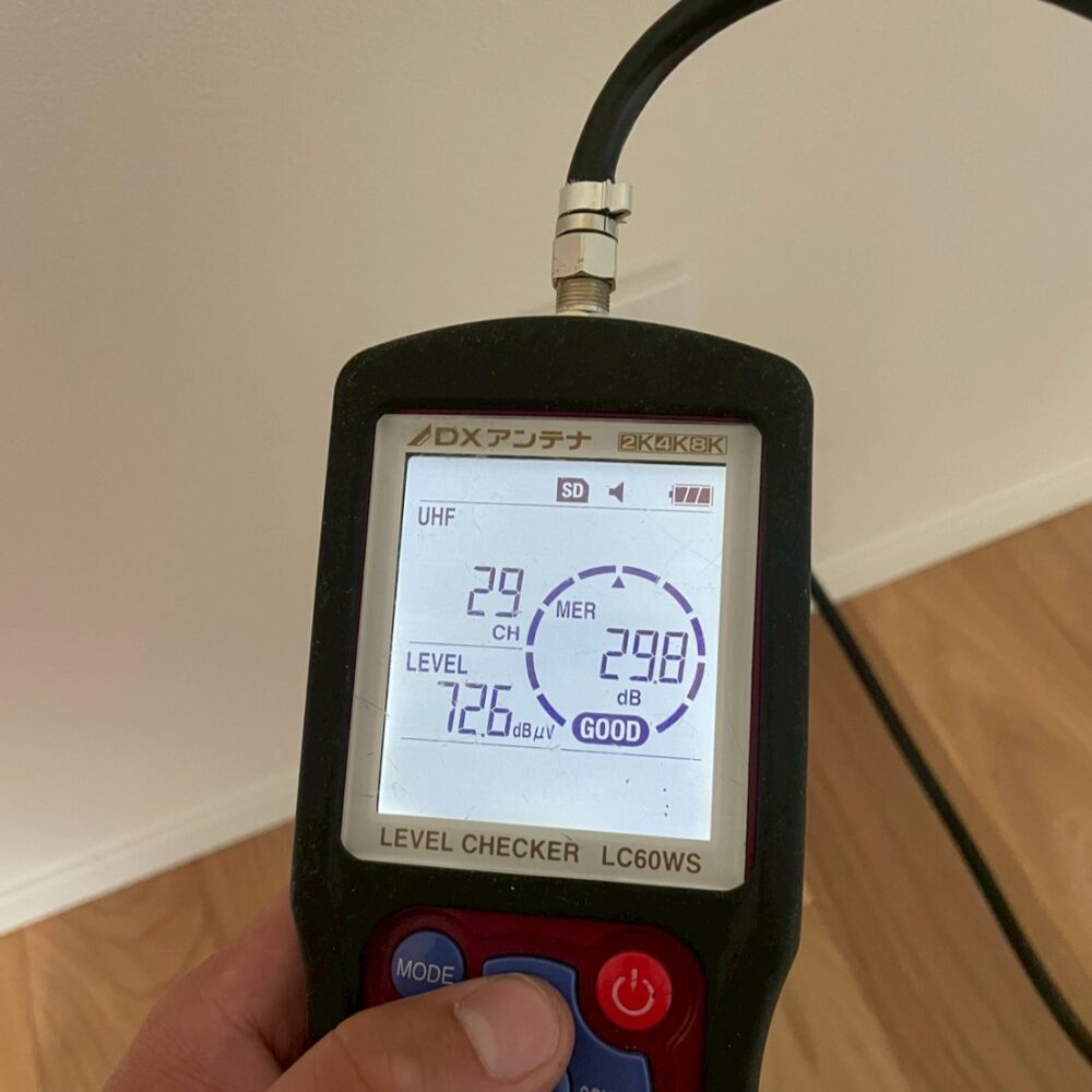 地デジやドットコムでは、工事当日に実際の電波数値を測定し、必要かどうかをしっかりと判断してご案内しています📊✨