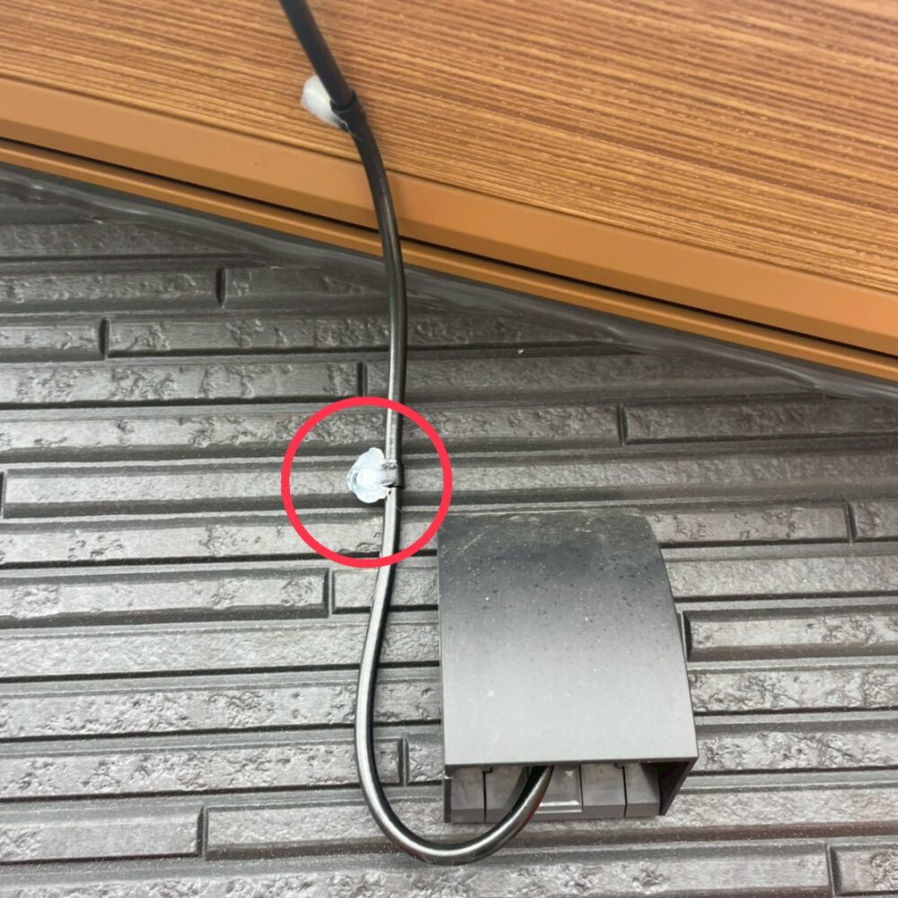 アンテナで受信した電波を屋内に送るため、入線口まで配線をしっかりと固定していきます🔌