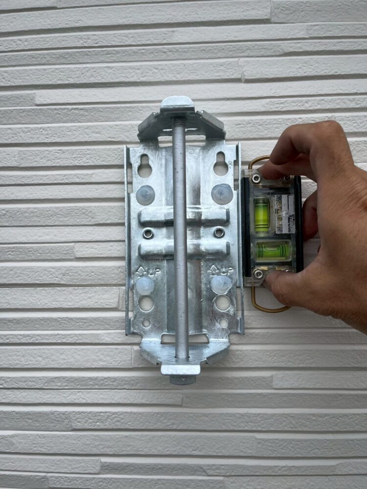 水平器を使って正確に取り付け、ビス穴にはしっかりと防水対策を施します!