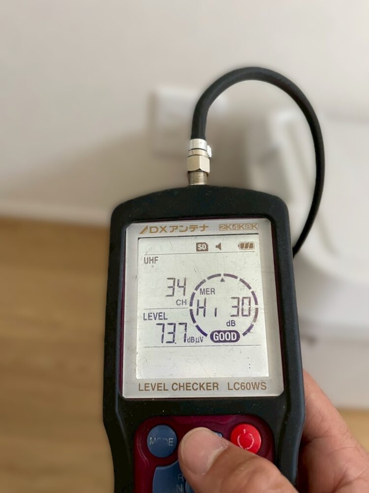 しかし、今回のケースではブースターも設置して、受信レベルはGOODと確認できました👌