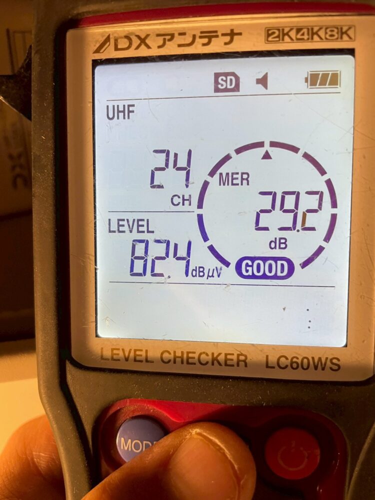 チェッカーで電波数値を確認することで、「この場所に設置して問題なくテレビを視聴できるか」を事前に確認できるため、設置後のトラブルを防ぐことができます✨