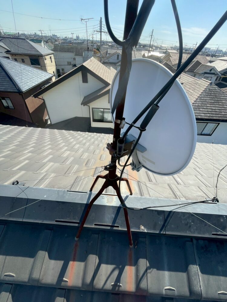 屋根上に設置されていた八木式アンテナとBSアンテナは、なんと28年ものの歴史あるアンテナでした🐟