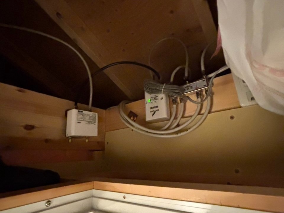 ブースターは本体部と電源部から構成されており、どちらもアンテナと同様、屋根裏に設置しました!