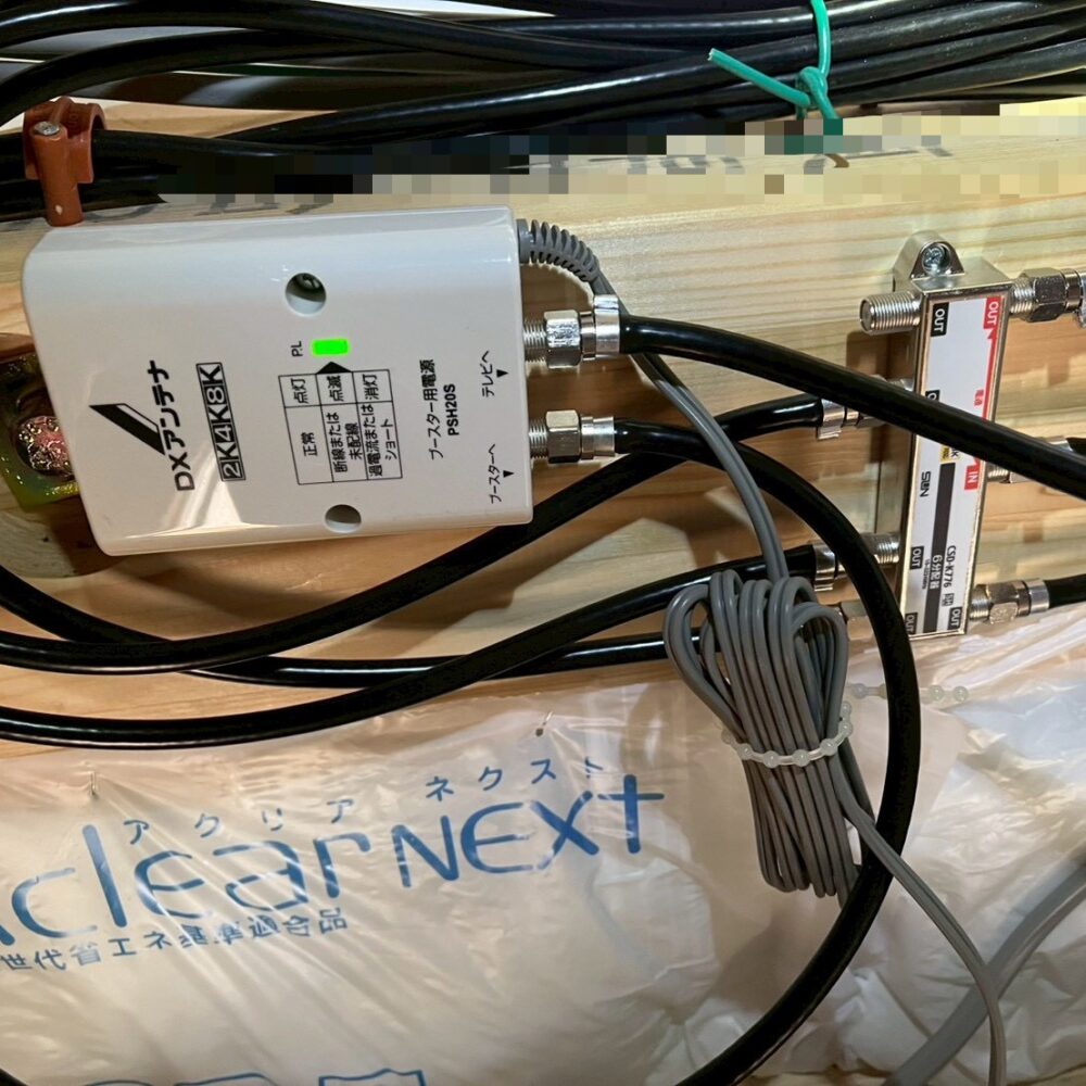今回は屋根裏設置という条件もあり、より安定した受信を確保するためにブースターを設置しました😊