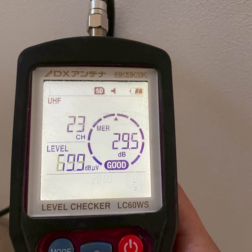 地デジやドットコムでは、専門のチェッカーを使って電波の強度・品質を細かく測定📡