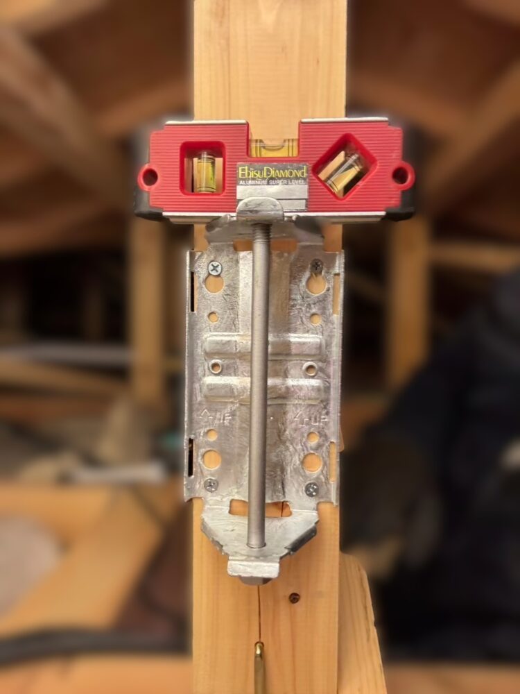 屋根裏の柱に金具を使ってアンテナを設置しました!