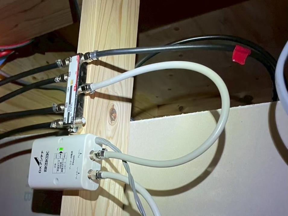 分配器は、各部屋のテレビへ電波を分ける機器です☺️