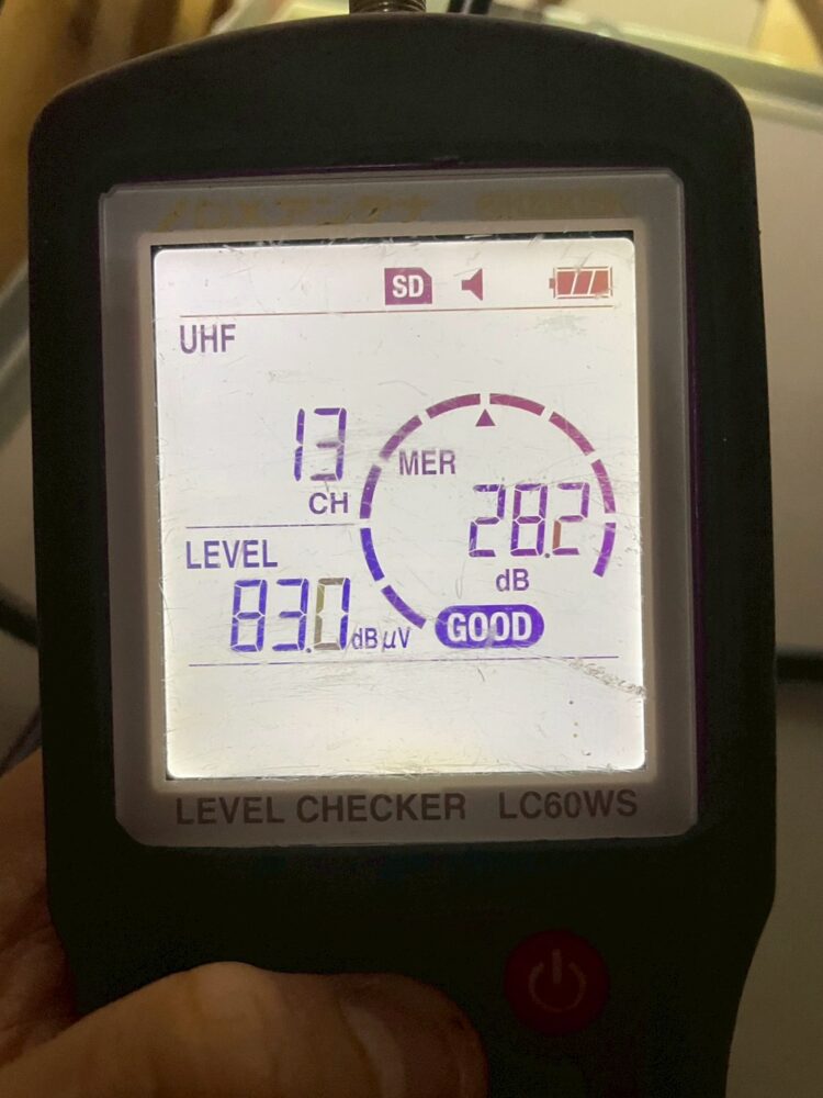 アンテナとブースターを設置して電波の受信レベルは良好です👌