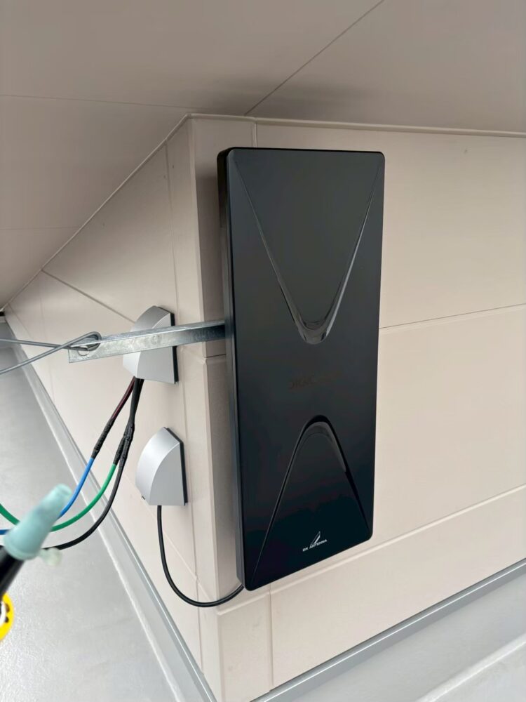 お客様のご希望をお伺いし、現地で電波状況などを確認したうえで、外壁にデザインアンテナを設置しました🏚️
