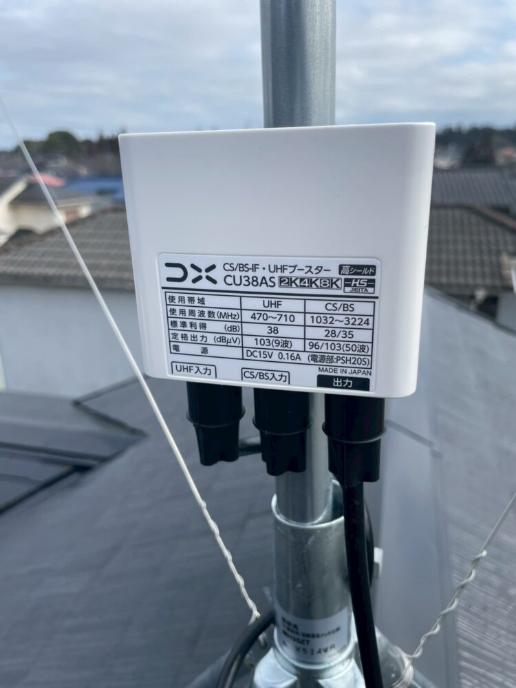 今回はアンテナの性能を120%引き出すために、ブースター(増幅器)も設置いたしました!