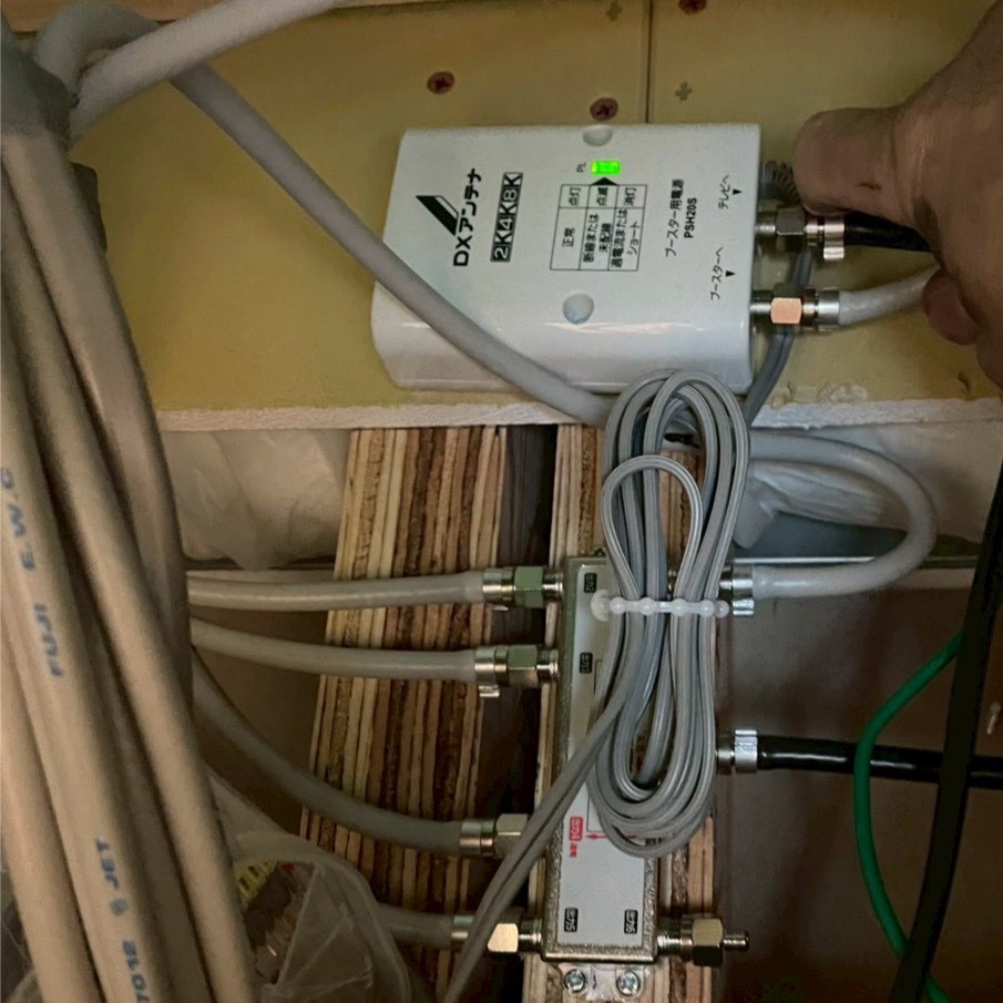 アンテナ本体の設置と合わせて、今回もブースター(増幅器)をしっかりと取り付けました!