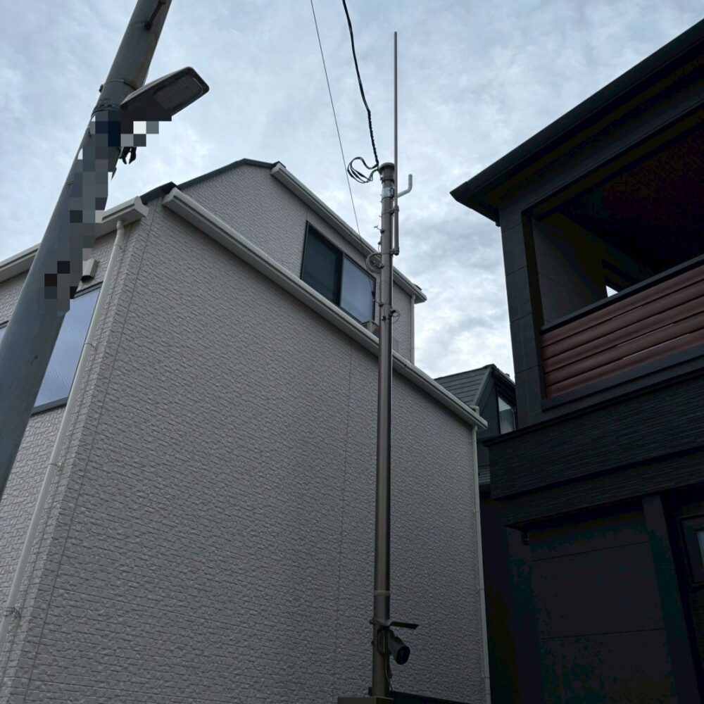 通常は建物の壁面に設置することが多いアンテナですが、今回はこのポールを活用して2種類のアンテナをスマートに設置させていただきました😊🔧