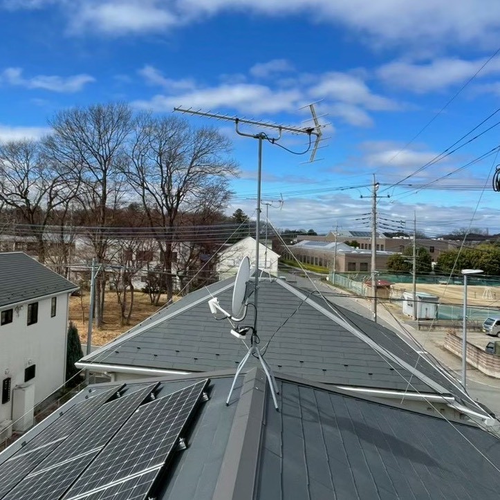 屋根の上には、地デジ用の「八木式アンテナ」と、衛星放送用の「BS/CSアンテナ」がセットで設置されていました📡